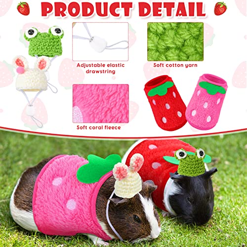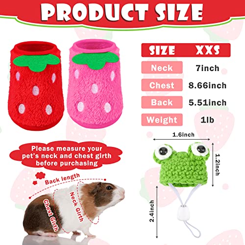 Specification: 4 Pieces Guinea Pig Stuff Includes 2 Guinea Pig Clothes and 2 Cute Mini Hats with Adjustable Strap Small Animal Warm Vest Cozy Hand Knitted Hat for Guinea Pig Hamster Bunny (Frog Style)